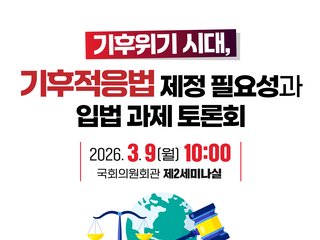 [국회세미나] 기후적응법 제정 필요성과 입법 과제 토론회 (~2026.03.09.)
