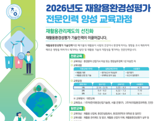 [한국환경산업기술원] '26-1차 재활용환경성평가 전문인력 양성과정(전문교육) 수강생 모집 안내 (~2026.03.15.)