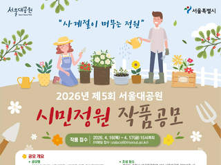 서울특별시 서울대공원은 정원문화 확산과 시민 참여 기회 확대를 위해 「2026년 제5회 서울대공원 시민정원 작품공모」를 추진하오니 관심 있는 시민들의 많은 참여를 바랍니다.2026...
