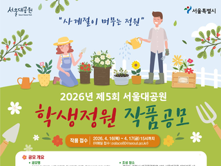 서울특별시 서울대공원은 정원문화 확산과 미래세대인 학생들에게 창의적인 정원 조성을 통한 배움의 기회를 제공하고자 「2026년 제5회 서울대공원 학생정원 작품공모」를 추진하오니 관심...