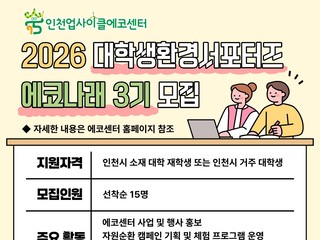 [인천업사이클에코센터] 2026년 대학생환경서포터즈 에코나래 3기 모집 (~2026.03.18.)