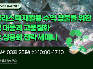 [산업교육연구소] 폐플라스틱 재활용 수익 창출을 위한 정책 대응과 고품질화 기술 상용화 전략 세미나 (~2026.03.24.)