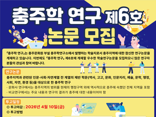 [충주문화원 부설 충주학연구소] 충주학 연구 제6호 논문 모집 (~2026.04.10.)